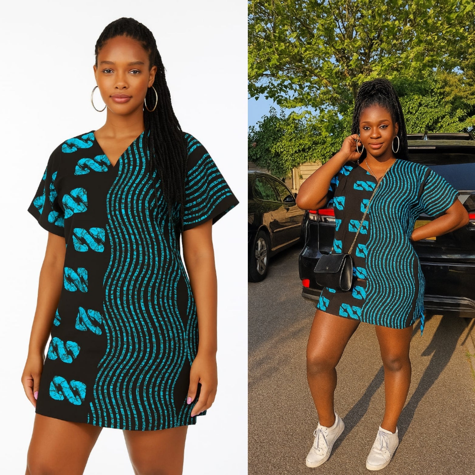 Meet The Amina Adjustable Mini, where African heritage meets modern versatility. Made from premium Ankara fabric in a bold dual-print design, this eye-catching mini dress features adjustable side drawstrings that let you customise the length to suit your vibe, be that ruched for a flirty look or relaxed for effortless cool. With its flattering fit, soft cotton feel, and standout patterns, Amina is your go-to for bold, everyday slay.